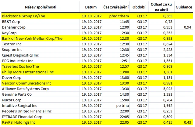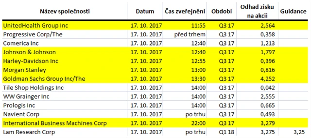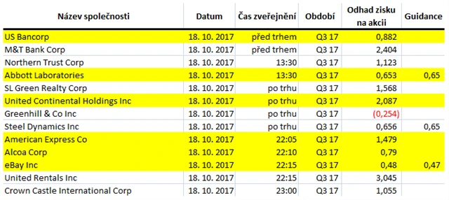 Poznámka: Odhady analytiků jsou aktuální k 12. 10. 2017.