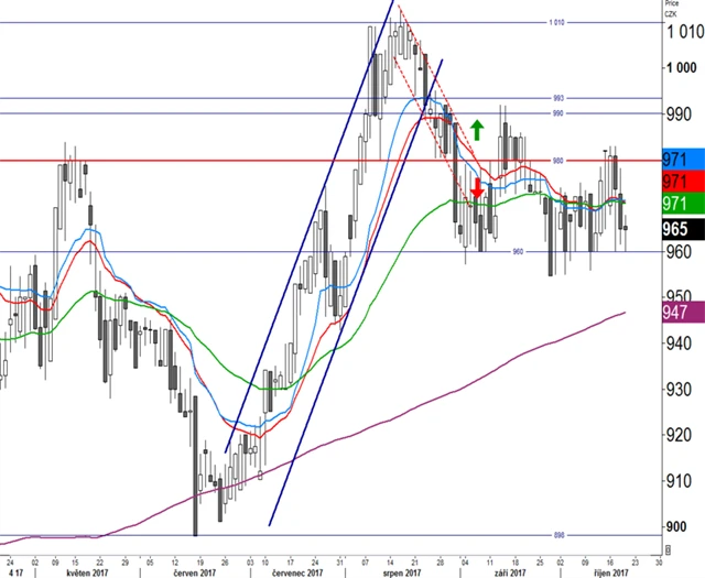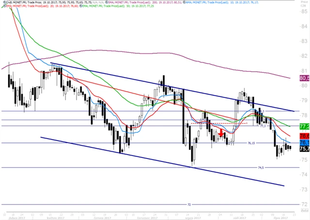 ČEZ, Komerční banka a MONETA Money Bank: České blue chips pohledem technické analýzy (20. 10. 2017)