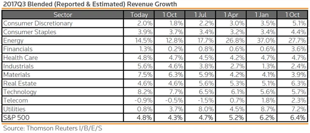 Jak se vyvíjejí odhady růstu či poklesu tržeb za 3Q2017?