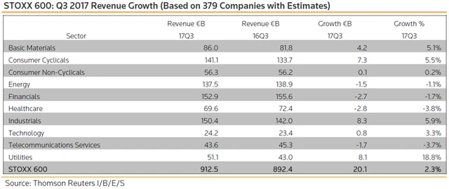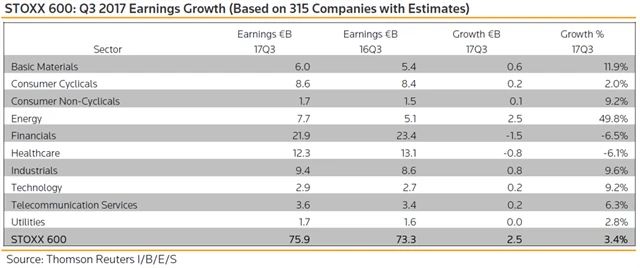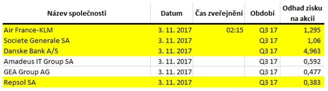 Jaké jsou odhady výsledků evropských firem za 3Q2017?