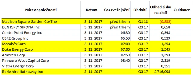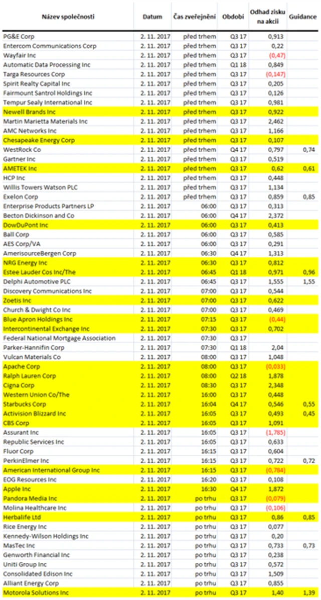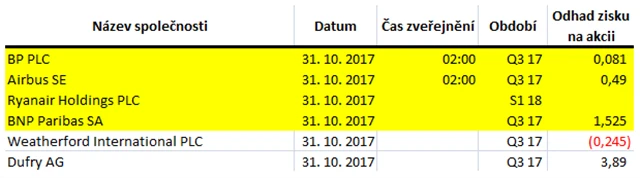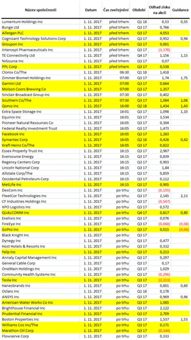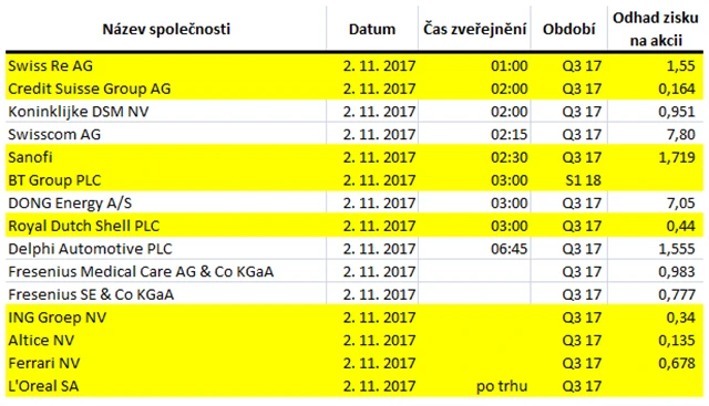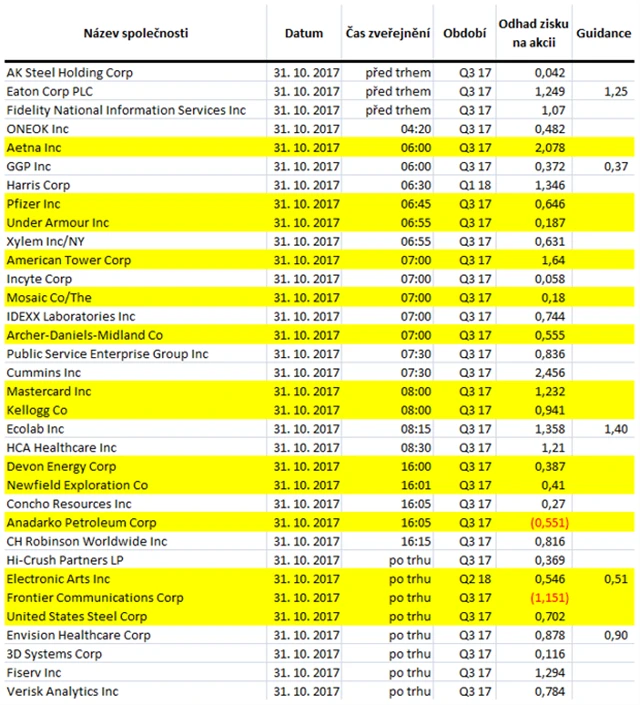 Poznámka: Odhady analytiků jsou aktuální k 26. 10. 2017.