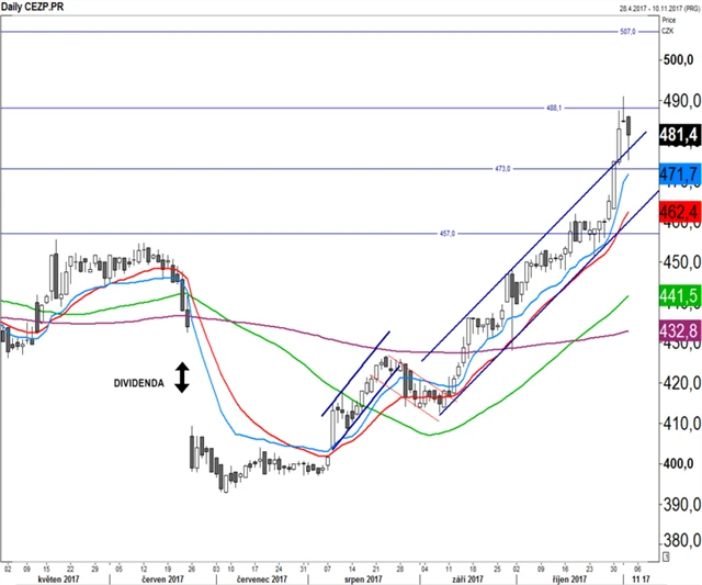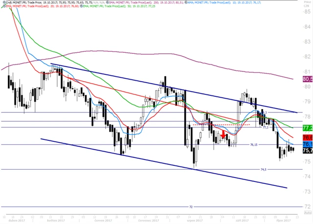 ČEZ, Komerční banka a MONETA Money Bank: České blue chips pohledem technické analýzy (3. 11. 2017)
