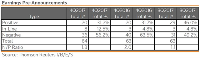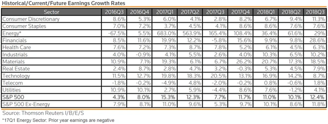 Jak se vyvíjejí odhady růstu či poklesu zisků za 3Q2017?
