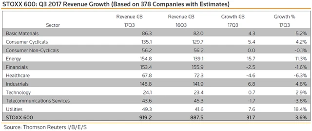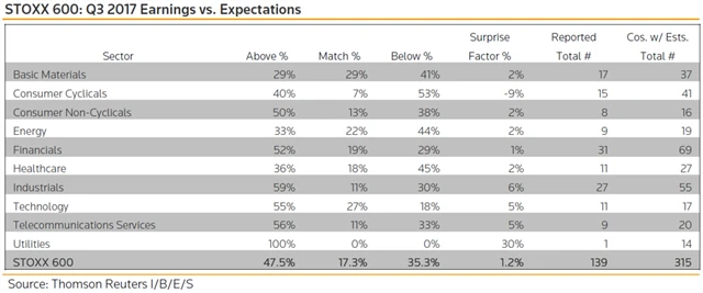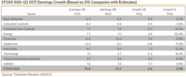Jaké jsou odhady výsledků evropských firem za 3Q2017?