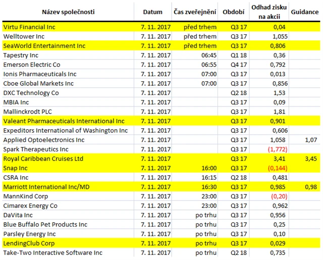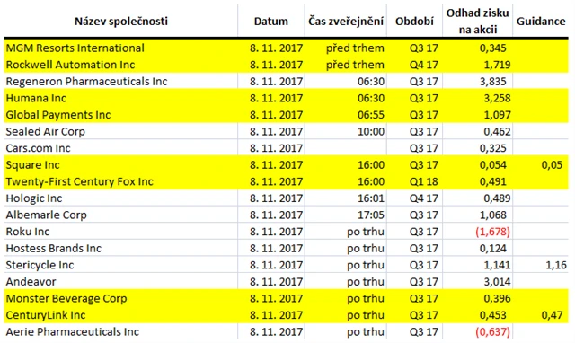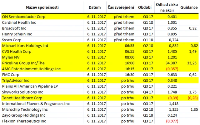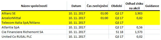 Očekávané výsledky světových firem v týdnu od 6. listopadu (3. 11. 2017)
