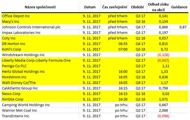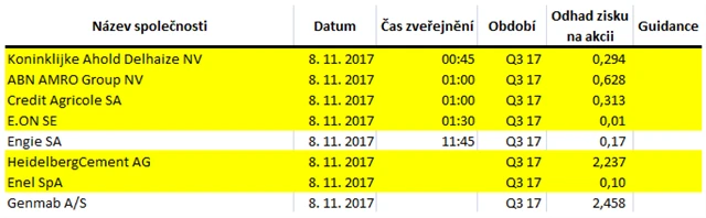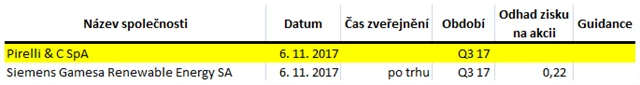 Poznámka: Odhady analytiků jsou aktuální k 1. 11. 2017.