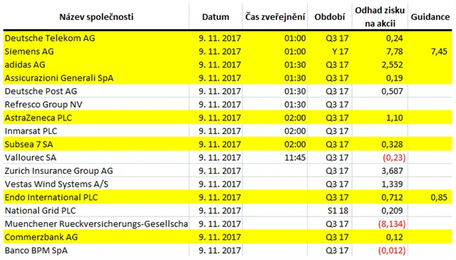 Jaká překvapení přinesly oznámené výsledky za 3Q2017?