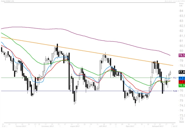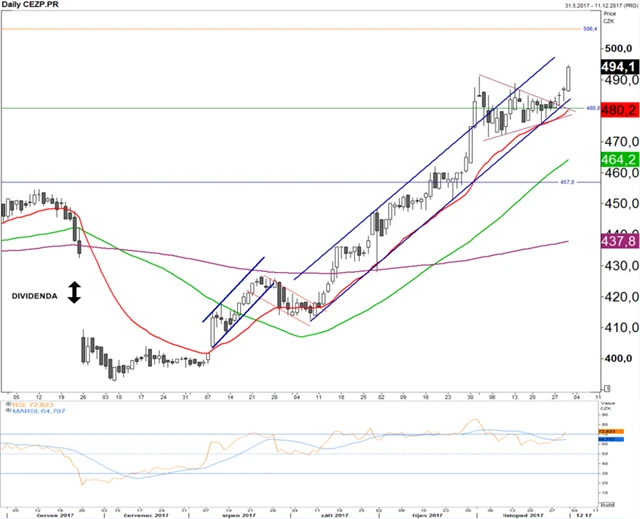 ČEZ, Komerční banka a MONETA Money Bank: České blue chips pohledem technické analýzy (1. 12. 2017)