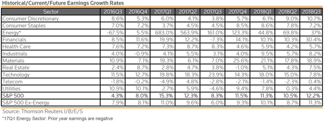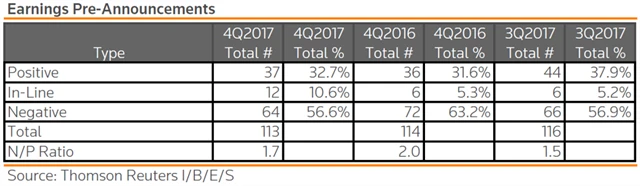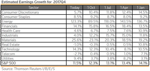Jak se vyvíjejí odhady růstu či poklesu zisků za 4Q2017?