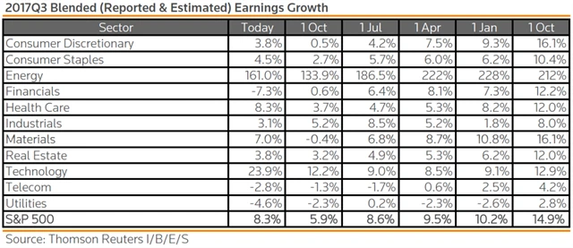 Jak se vyvíjely odhady růstu či poklesu zisků za 3Q2017?