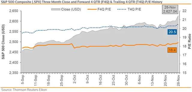 Které světové firmy představí výsledky hospodaření za uplynulý kvartál v týdnu od 4. prosince a jaké zisky v rámci indexu S&P 500 a od jednotlivých společností očekávají analytici oslovení agenturami Thomson Reuters a Bloomberg? (1. 12. 2017)