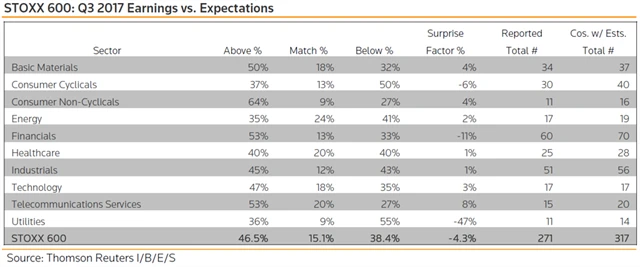 Jaká překvapení přinesly výsledky evropských firem za 3Q2017?