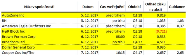 Očekávané výsledky světových firem v týdnu od 4. prosince (1. 12. 2017)
