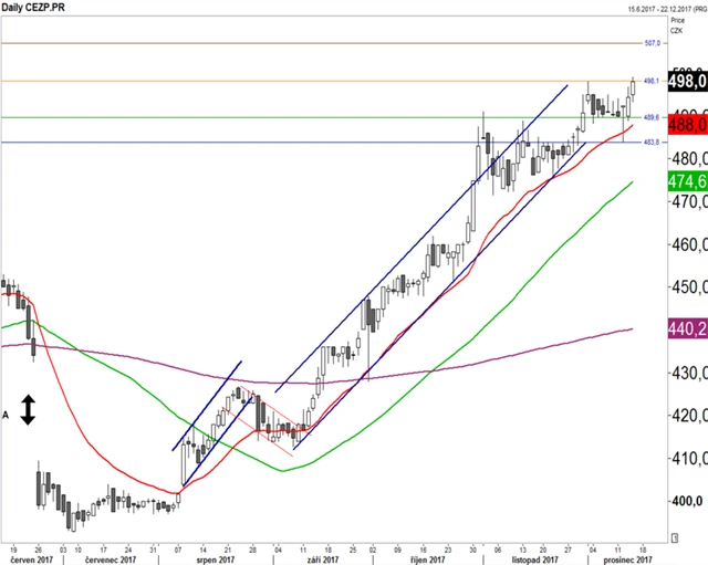 ČEZ, Komerční banka a MONETA Money Bank: České blue chips pohledem technické analýzy (14. 12. 2017)