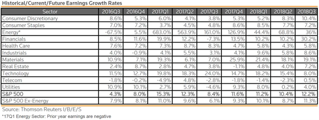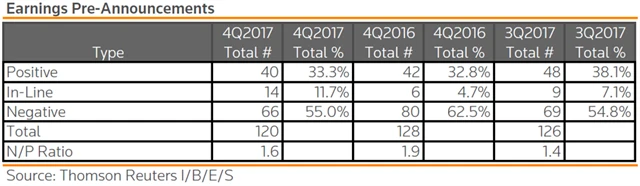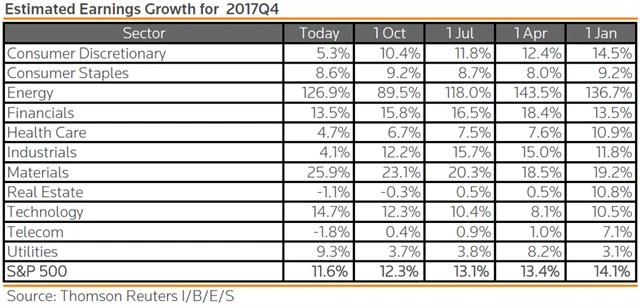 Jak se vyvíjejí odhady růstu či poklesu zisků za 4Q2017?