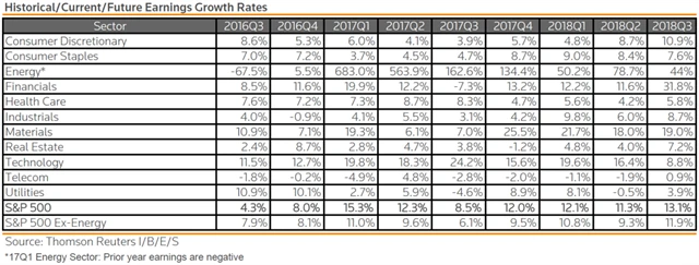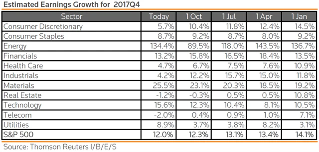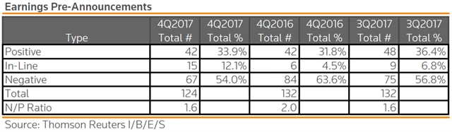 Jak se vyvíjejí odhady růstu či poklesu zisků za 4Q2017?