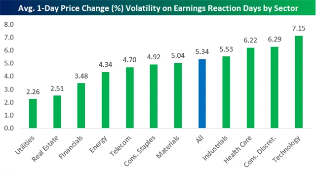 V průměru se hodnota akcie firmy, která zveřejní hospodářské výsledky, změní o 5,34 %. V některých sektorech jsou změny výraznější (technologie 7,15 %), v odvětví veřejných služeb je změna pouze v průměru 2,26 %.