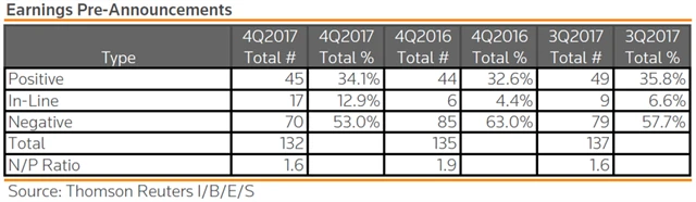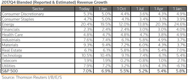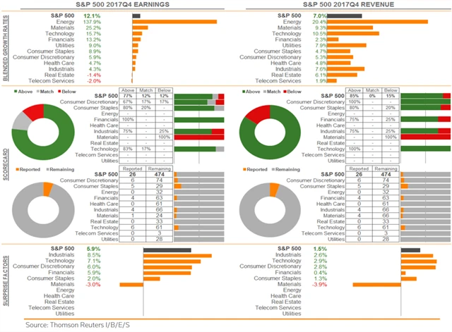 Jak se vyvíjejí odhady růstu či poklesu zisků a tržeb za 4Q2017?