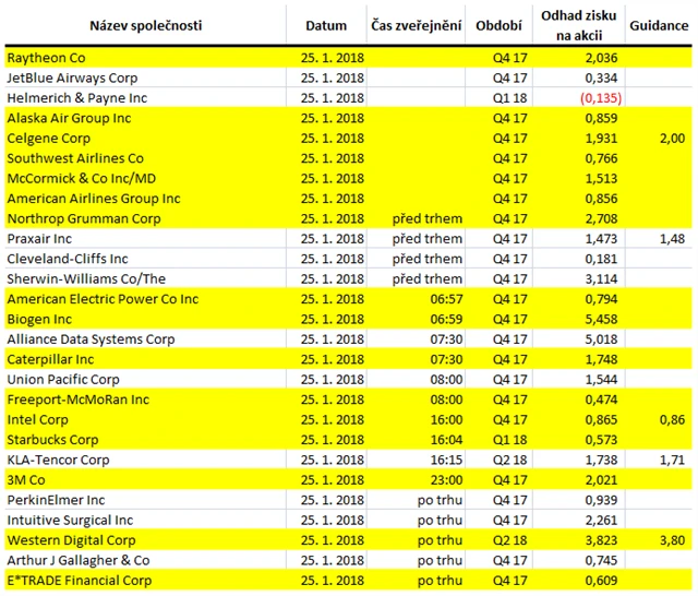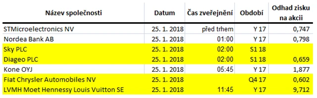 Poznámka: Odhady analytiků jsou aktuální k 16. 1. 2018.