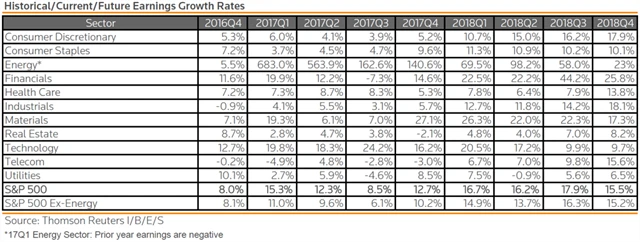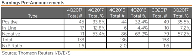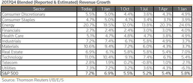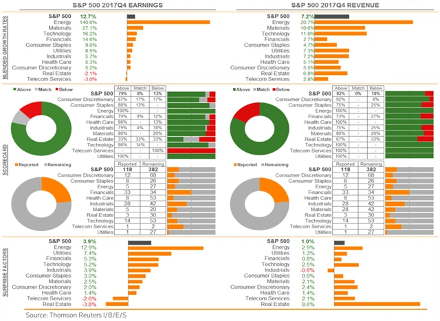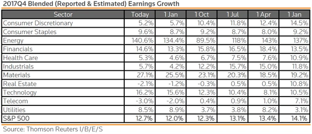 Jak se vyvíjejí odhady růstu či poklesu zisků a tržeb za 4Q2017?