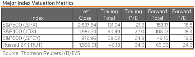Jak jsou oceněny hlavní americké akciové indexy?