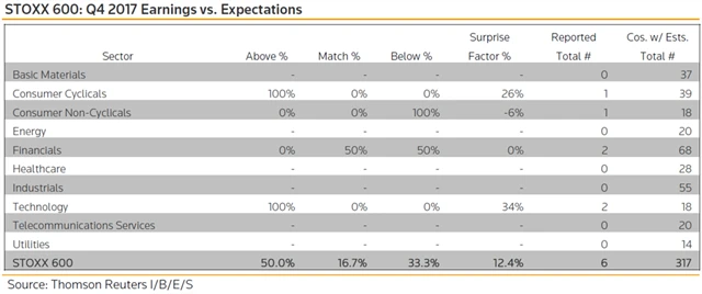 Jaká překvapení přinesly výsledky evropských firem za 4Q2017?