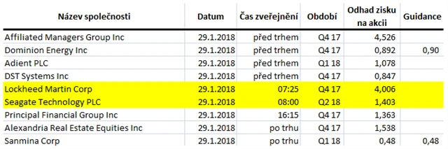 Očekávané výsledky světových firem v týdnu od 29. ledna (26. 1. 2018)