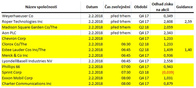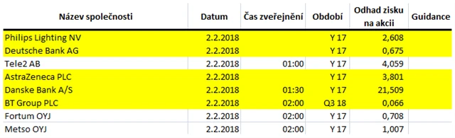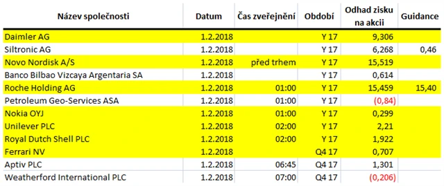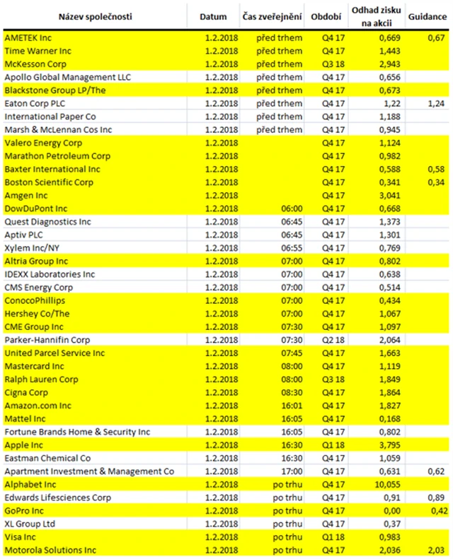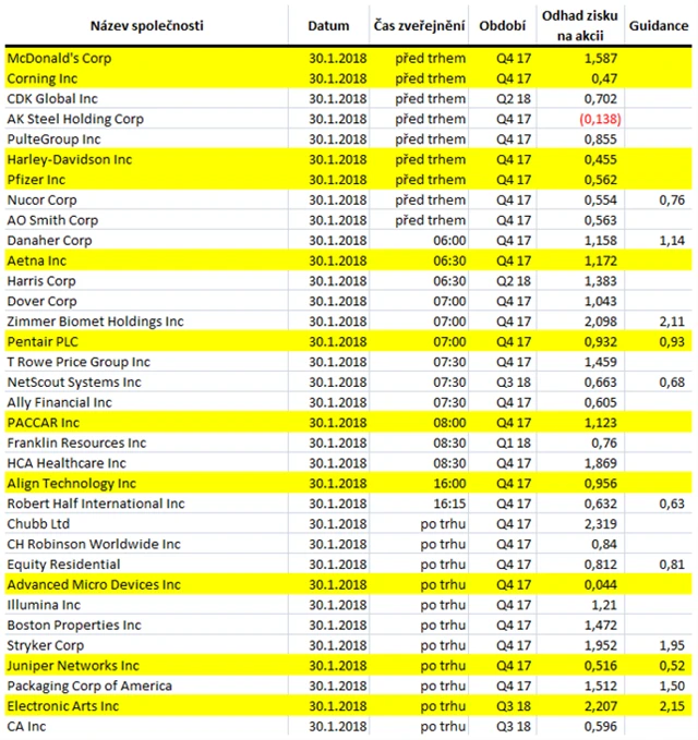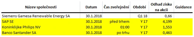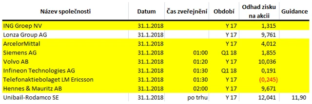 Poznámka: Odhady analytiků jsou aktuální k 25. 1. 2018.