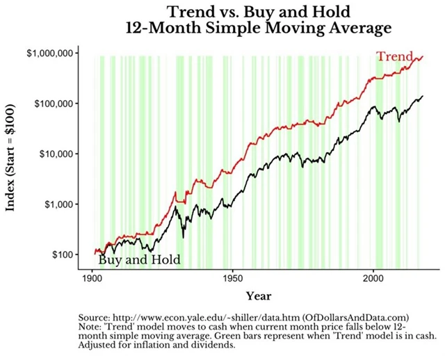 Odpověď na otázku je podle Maggiulliho jasná. Uvedený přístup sleduje, kam míří peníze investorů. Sledování trendu znamená, že investor "jde s davem", ale v době poklesů je mimo trh. Někdy dojde ke ztrátě, ale obrovskou výhodou je to, že se investor se vyhne největším propadům. Díky tomu v dlouhodobém horizontu může dosahovat lepšího výkonu než trh jako celek.