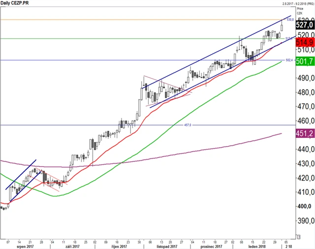 ČEZ, Komerční banka a MONETA Money Bank: České blue chips pohledem technické analýzy (1. 2. 2018)