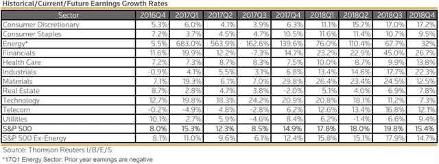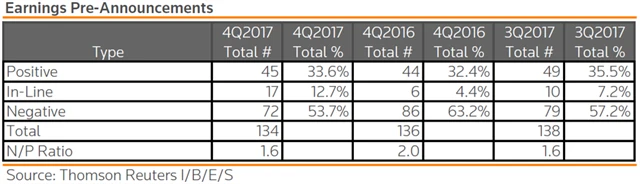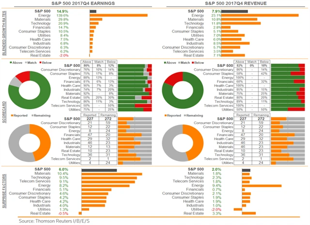Jak se vyvíjejí odhady růstu či poklesu zisků a tržeb za 4Q2017?