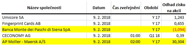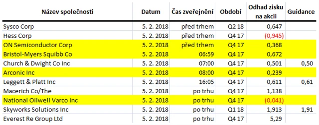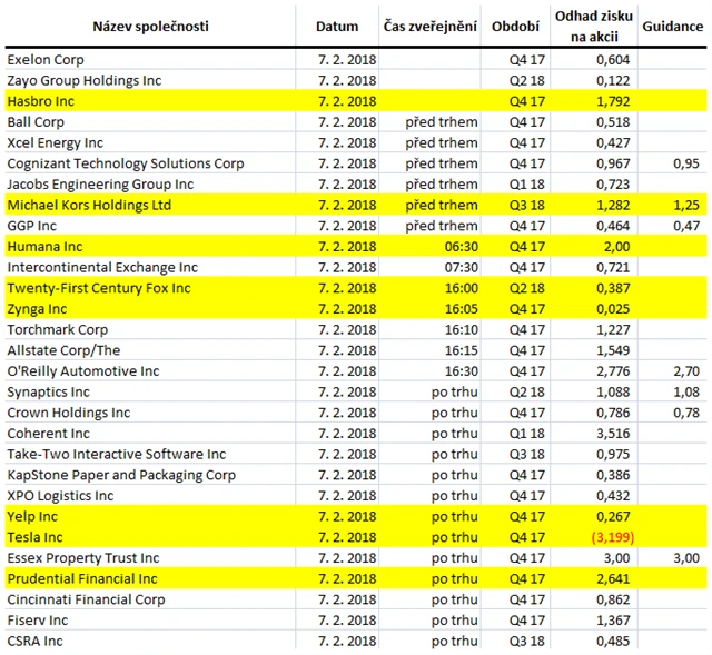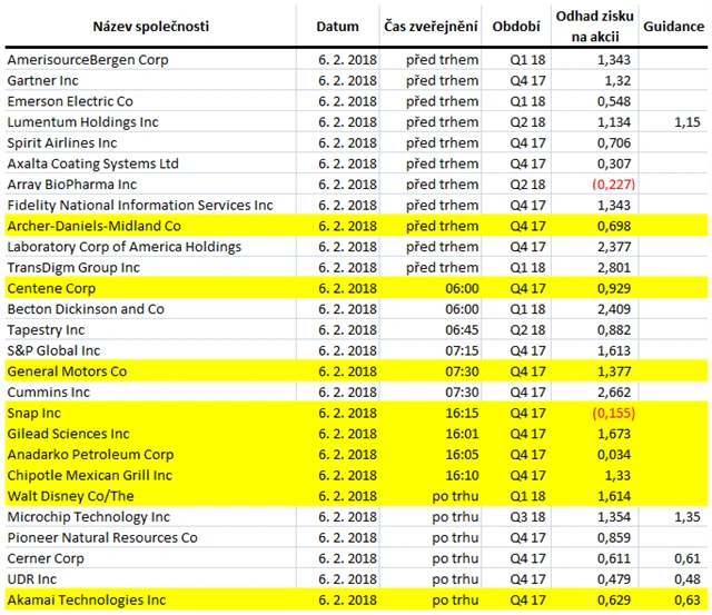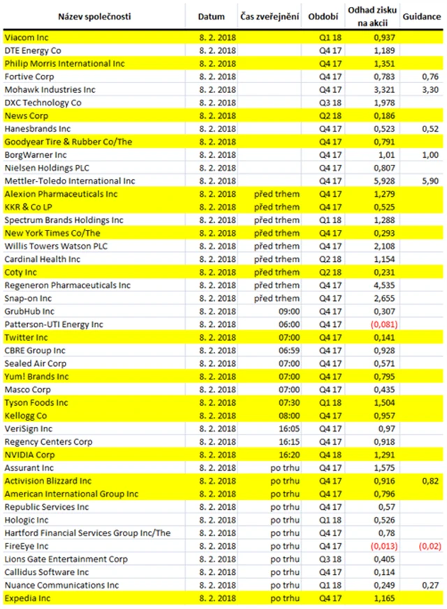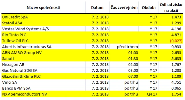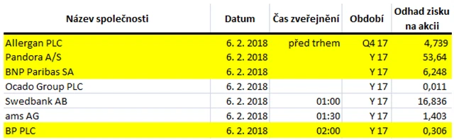 Očekávané výsledky světových firem v týdnu od 5. února (2. 2. 2018)
