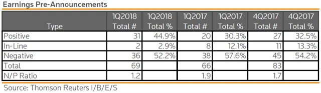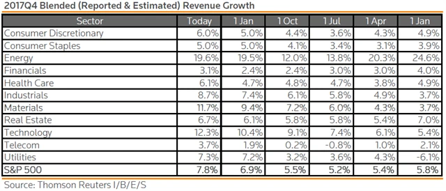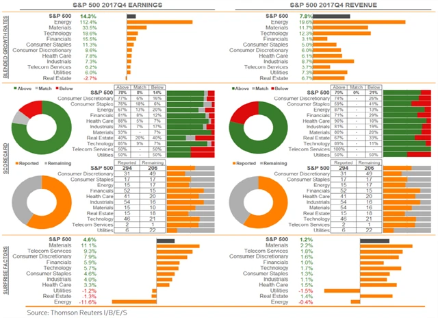 Jak se vyvíjejí odhady růstu či poklesu zisků a tržeb za 4Q2017?