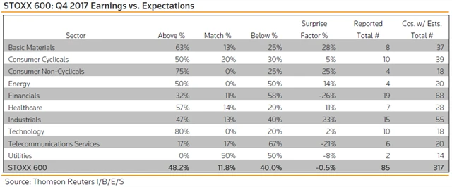 Jaká překvapení přinesly výsledky evropských firem za 4Q2017?
