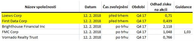 Očekávané výsledky světových firem v týdnu od 12. února (9. 2. 2018)
