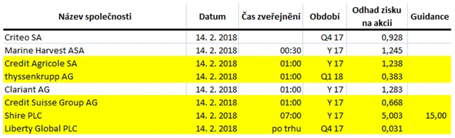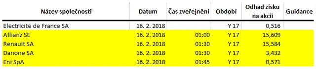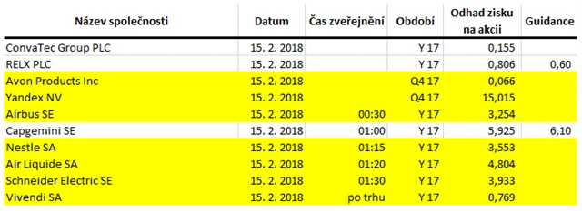 Poznámka: Odhady analytiků jsou aktuální k 9. 2. 2018.