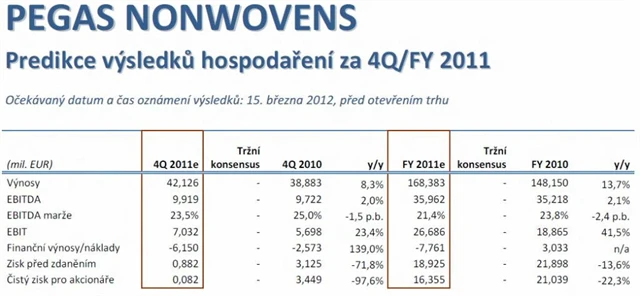 Pegas Nonwovens za čtvrtý kvartál vykáže vyšší tržby i náklady, zisk klesne o 98 %!