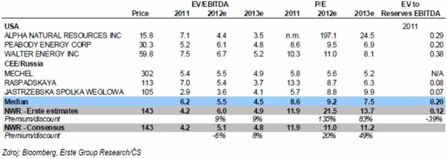 Společnost NWR je podle odhadu ukazatele EV/EBITDA v roce 2012 (6,0x) nyní oceněna 9 % nad srovnatelnými firmami v odvětví.
