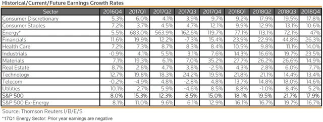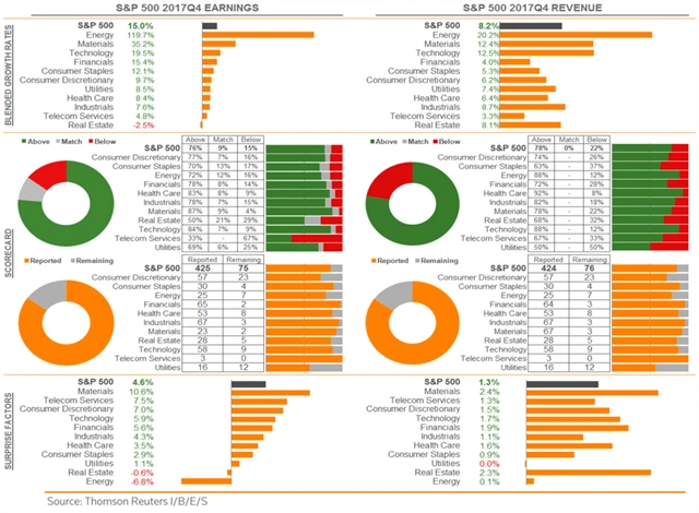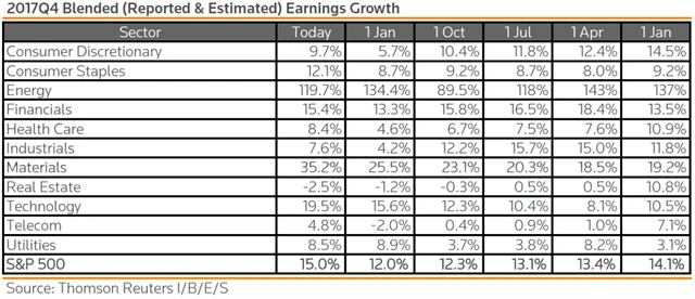Jak se vyvíjejí odhady růstu či poklesu zisků a tržeb za 4Q2017?