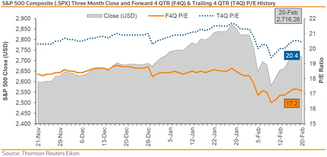 Které světové firmy představí výsledky hospodaření za uplynulý kvartál v týdnu od 26. února a jaké zisky v rámci indexu S&P 500 a od jednotlivých společností očekávají analytici oslovení agenturami Thomson Reuters a Bloomberg?