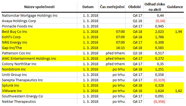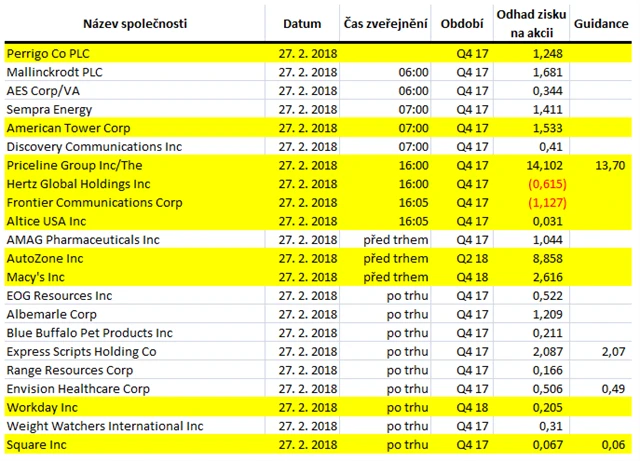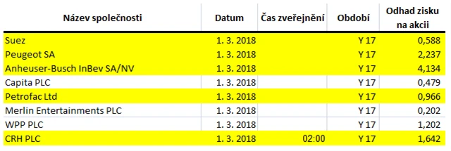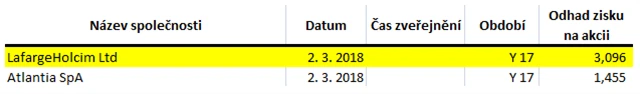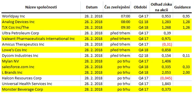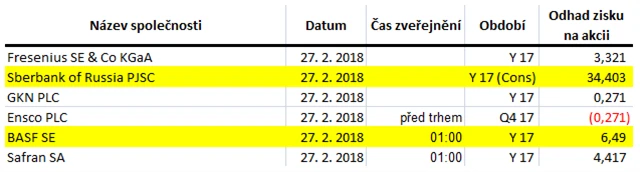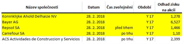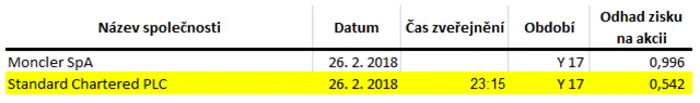 Poznámka: Odhady analytiků jsou aktuální k 22. 2. 2018.
