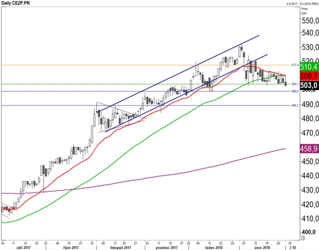 ČEZ, Komerční banka a MONETA Money Bank: České blue chips pohledem technické analýzy (1. 3. 2018)