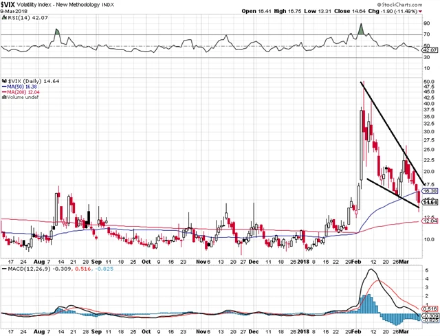 Index volatility má za sebou celkem šest dnů poklesu a je na úrovni, která by před dvěma lety byla považována za jasný býčí signál pro americké akcie. Za týden odepsal přes čtvrtinu hodnoty a v pátek uzavřel pod minimem z konce února i 50denním průměrem. Po případném potvrzení pozitivního vývoje zkraje týdne by mohl zamířit ještě níže, obchodování okolo úrovně 15 bodů by ale po turbulencích v posledních šesti týdnech také nebylo vyloženě negativní.