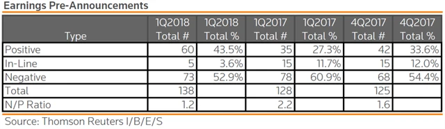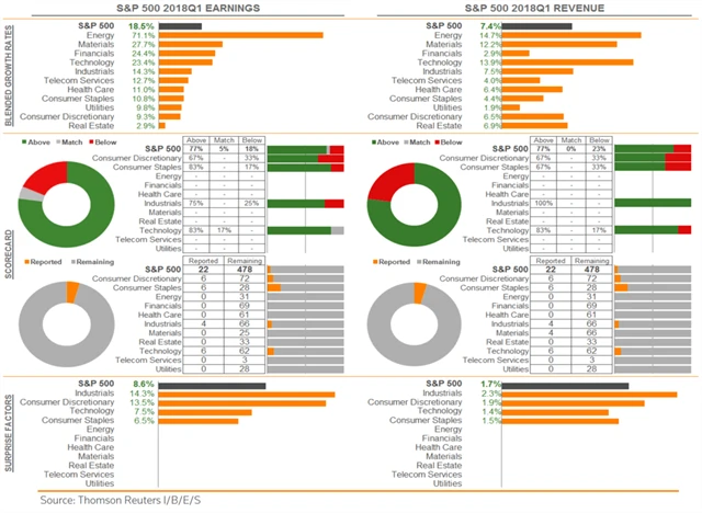 Jak se vyvíjejí odhady růstu či poklesu zisků a tržeb za 1Q2018?