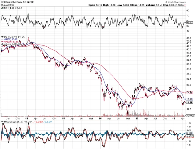 Poslední graf je evergreenem posledních měsíců. Deutsche Bank je jednou z nejzadluženějších institucí na světě, takže určité obavy jsou namístě. Přece jen jde o jednu z největších investičních bank. Investoři jí přestávají věřit a zvláštní otázky ohledně banky pokládá již také ECB.