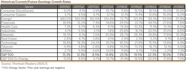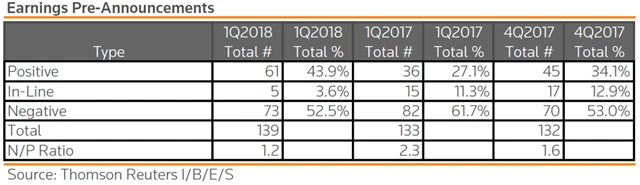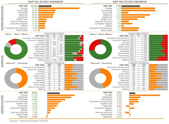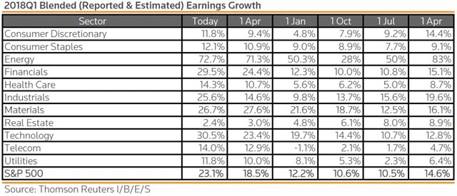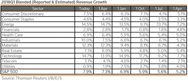 Jak se vyvíjejí odhady růstu či poklesu zisků a tržeb za 1Q2018?