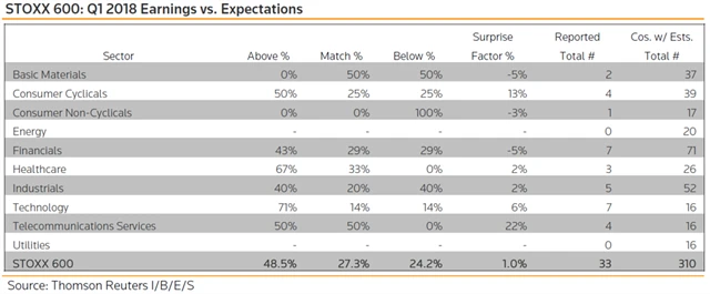 Jaká překvapení přinesly výsledky evropských firem za 1Q2018?