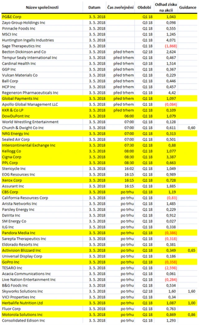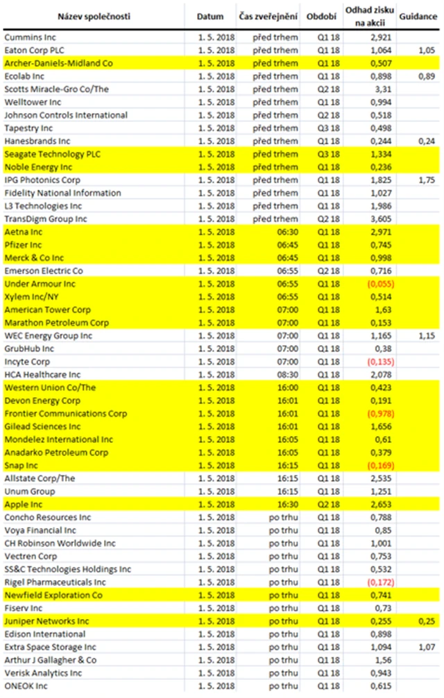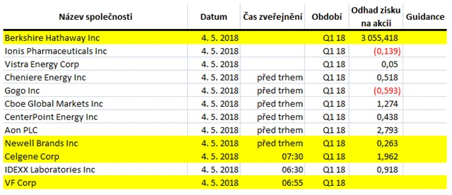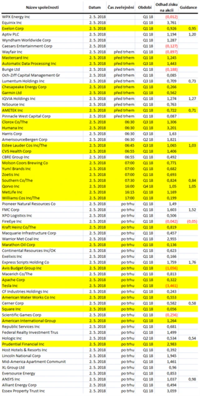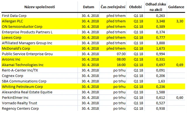 Poznámka: Odhady analytiků jsou aktuální k 26. 4. 2018.