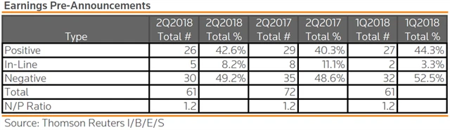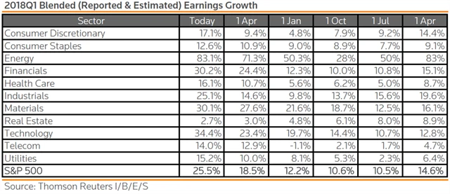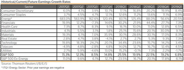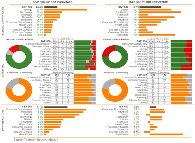 Jak se vyvíjejí odhady růstu či poklesu zisků a tržeb za 1Q2018?