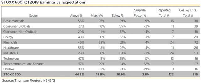 Jaká překvapení přinesly výsledky evropských firem za 1Q2018?